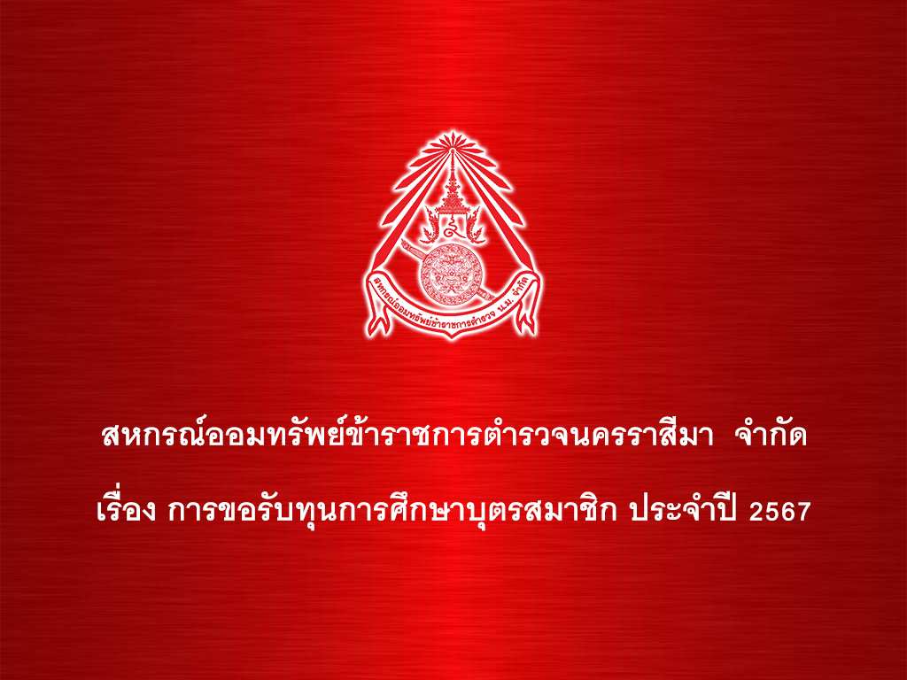 ประกาศสหกรณ์ฯ เรื่อง สหกรณ์ฯ จัดสรรทุนการศึกษาบุตรสมาชิก ประจำปี 2567 Posted on 13 พฤษภาคม 2024 by koratpolice koratpolice 13 พ.ค. แจ้งสมาชิกผู้มีสิทธิ์ได้รับทุนการศึกษาบุตร ประจำปี 2567 […] Continue reading →